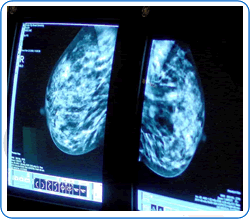 Digital mammography is a way of imaging the breast tissue and produces an X-ray called a mammogram. Each breast is compressed between two plastic plates while a beam of X-rays passes through the breast tissue onto an X-ray film.